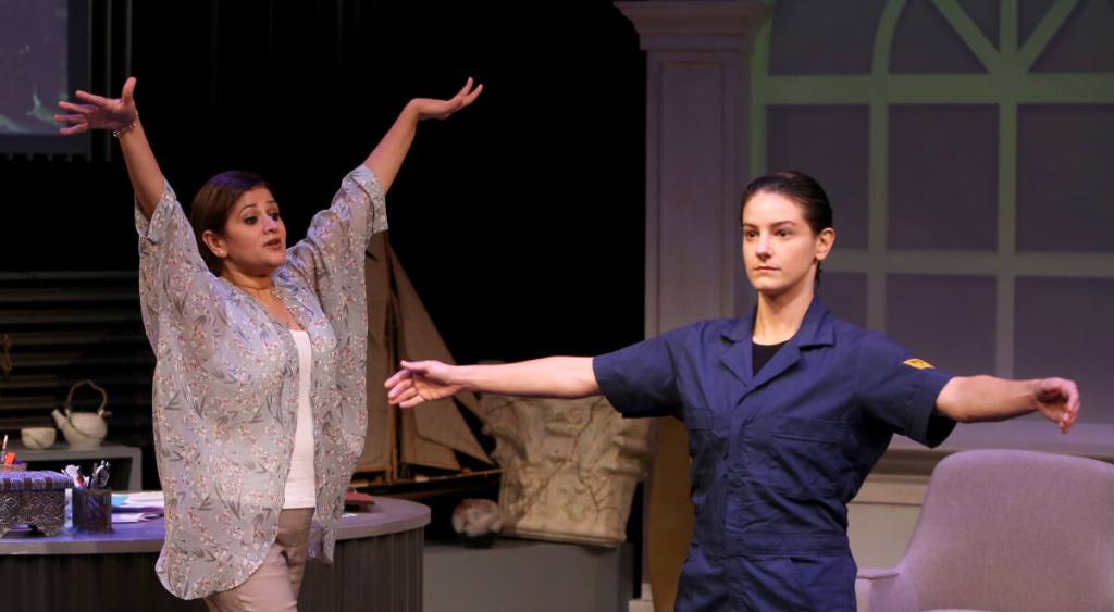 (In photograph, by Jeff Thomas: Sindu Singh as Dr. Mailer, Abbey Lee as Seventy-One, directed by Marty Pistone, produced in 2021 by Spreckels Theatre Company)
